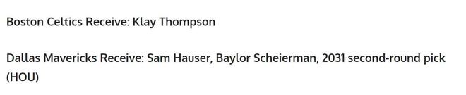 独行侠得到:豪瑟+谢尔曼+31年火箭二轮签。