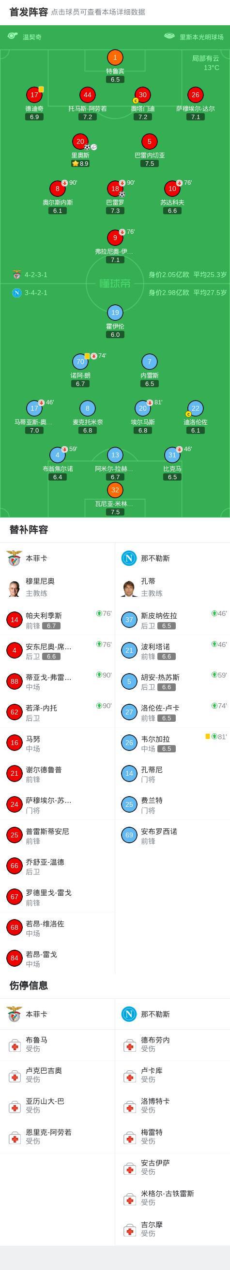 本菲卡2-0那不勒斯,里奥斯传射,巴雷罗破门